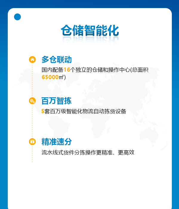 国内16个仓储中心(65000㎡),5套自动百万分拣机,精准高效。